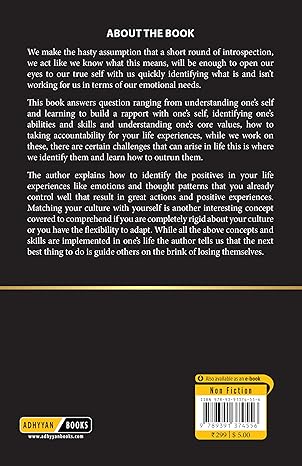 This book answers question ranging from understanding one’s self and learning to build a rapport with one’s self, identifying one’s abilities and skills and understanding one’s core values, how to taking accountability for your life experiences, while we work on these, there are certain challenges that can arise in life this is where we identify them and learn how to outrun them.